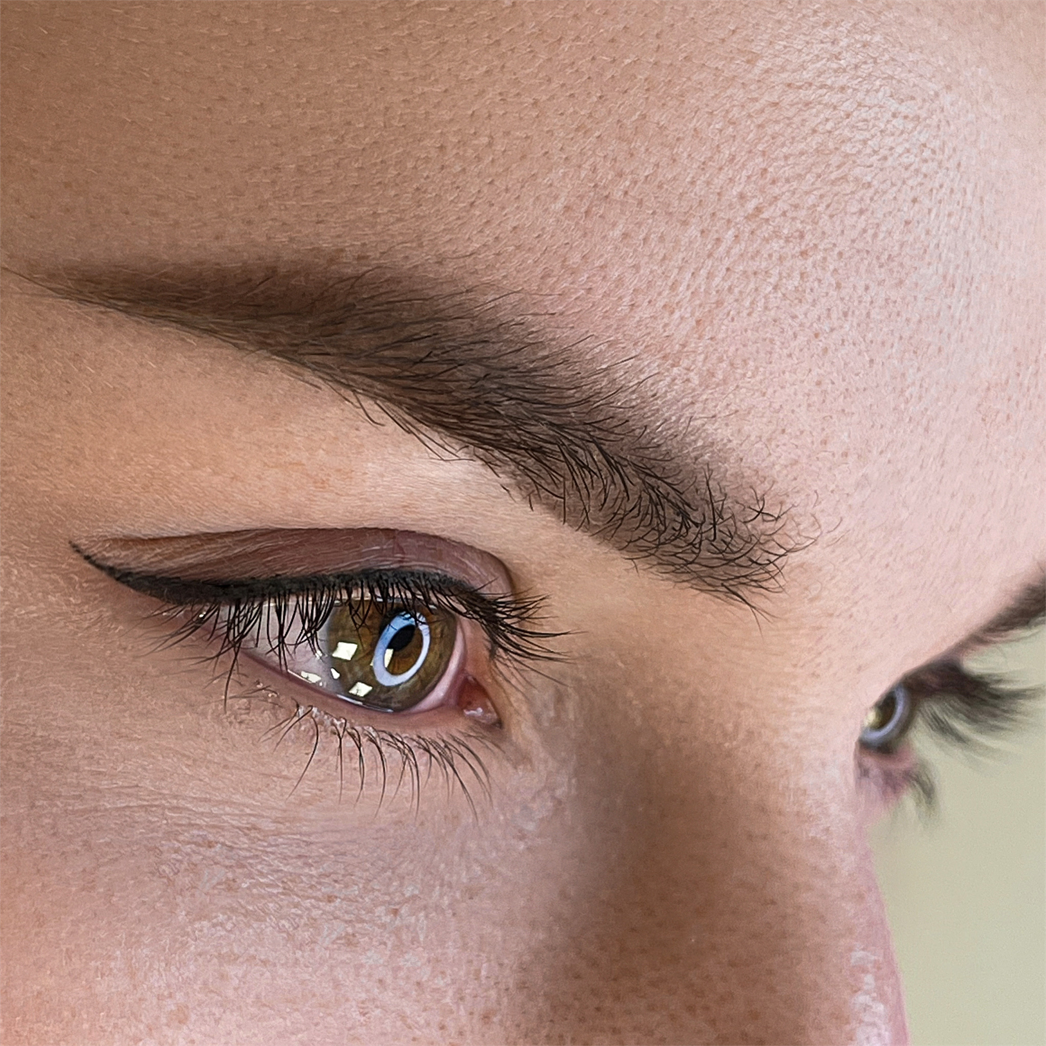 Прошёл месяц после коррекции бровей — всё идеально! Цвет как хотела, форма чёткая. Только чуть подкрашиваю — и всё. Спасибо огромное!